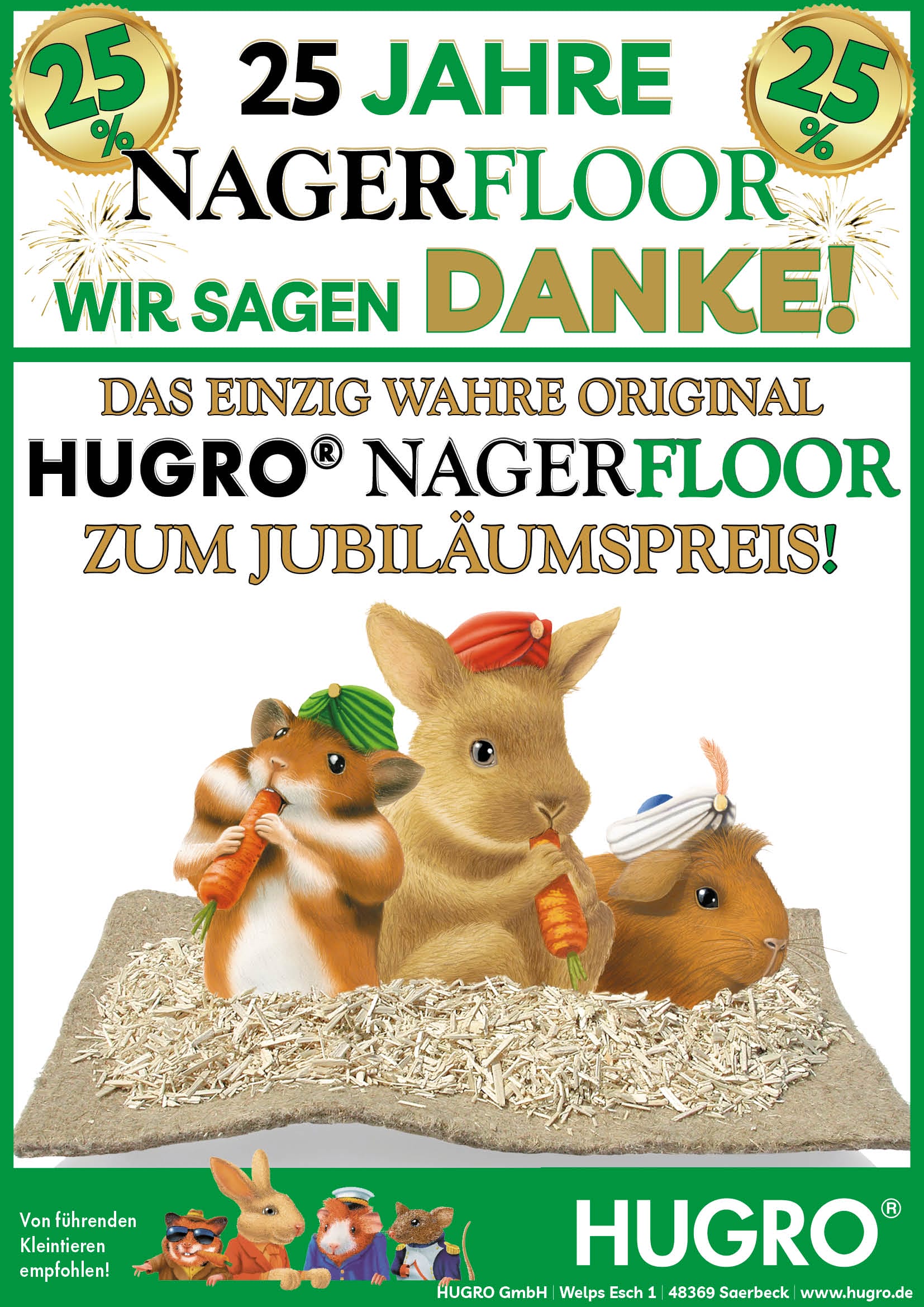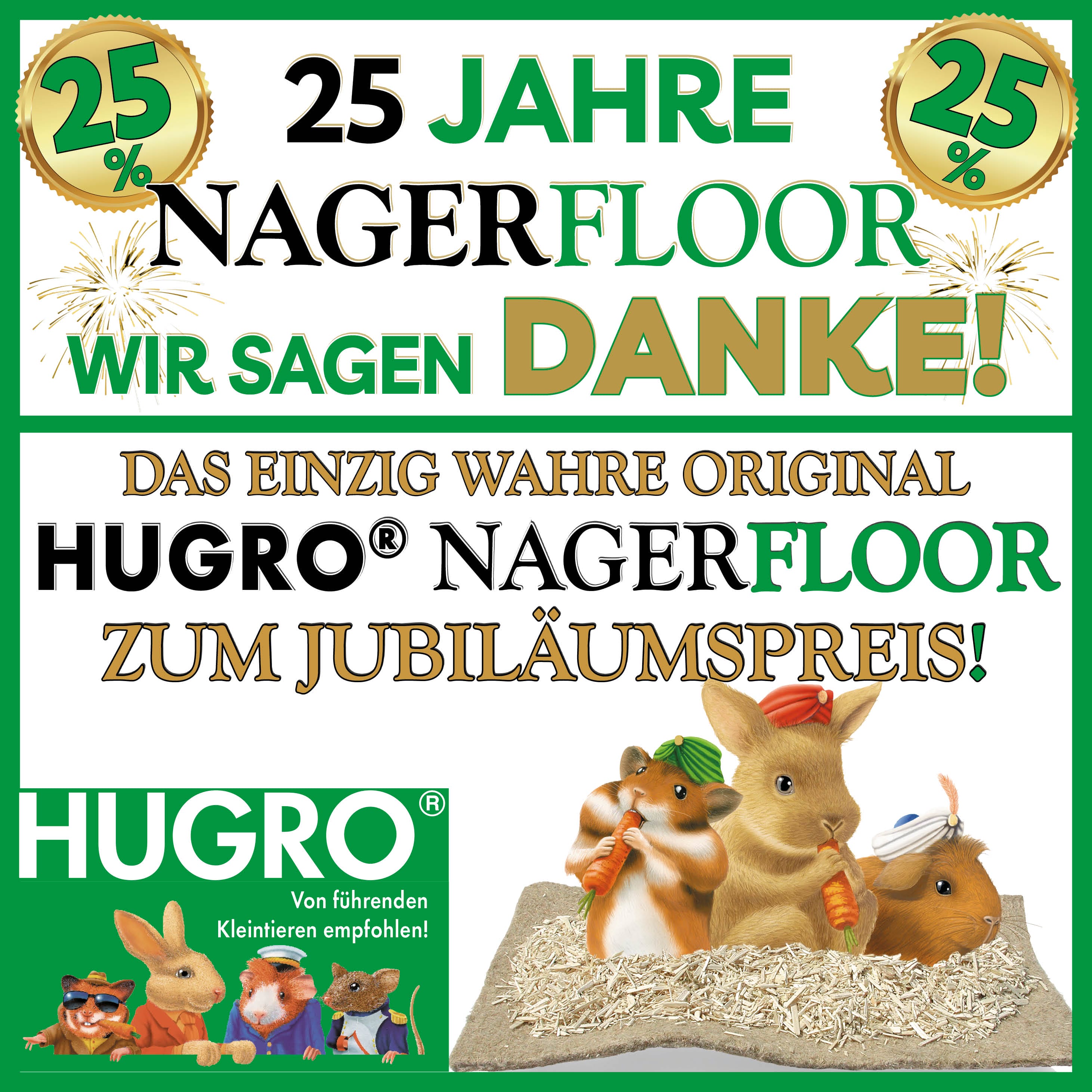 Vor 25 Jahren brachte HUGRO®-Geschäftsführer Günter Leugers die Hanfmatte für Kleintiere nach Deutschland – seitdem wurde sie soweit verbessert, dass wir uns sicher sein können: Unser HUGRO® Nagerfloor – Das Original ist für Ihr Tiere das Beste!