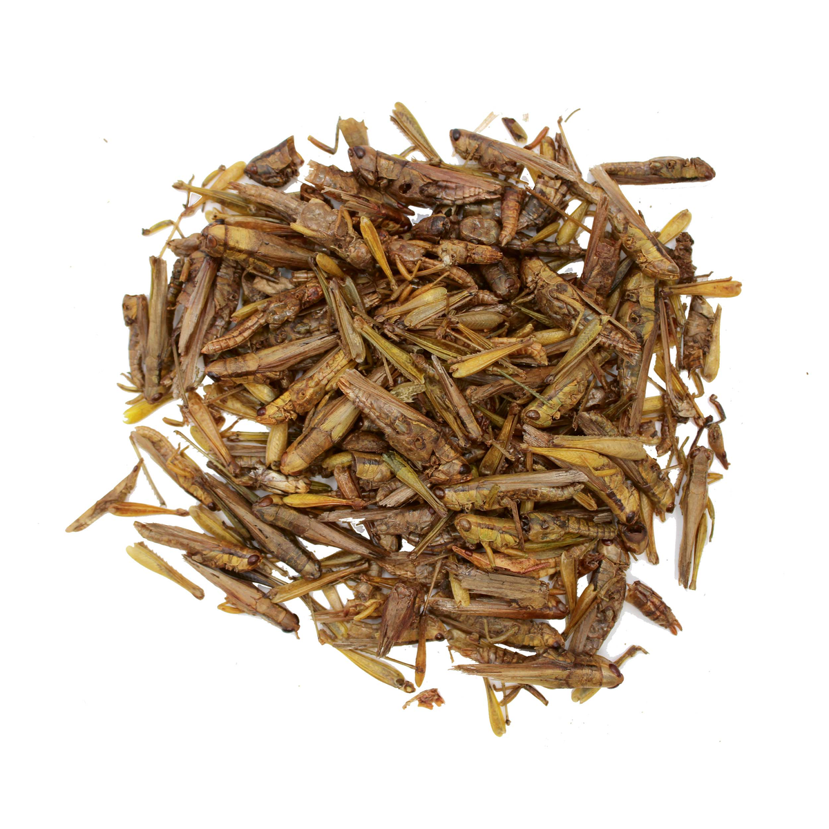 Unsere getrockneten Grashüpfer liefern das wichtige tierische Eiweiß und sind auch noch schmackhaft.