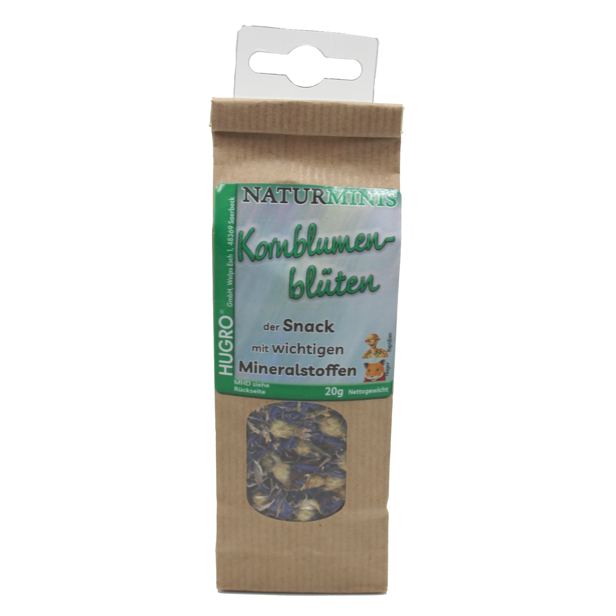 Mit den HUGRO Minis „Kornblumenblüten“ können Halter von Kleinsäugern und auch Reptilien ein hochwertiges Produkt verfüttern.