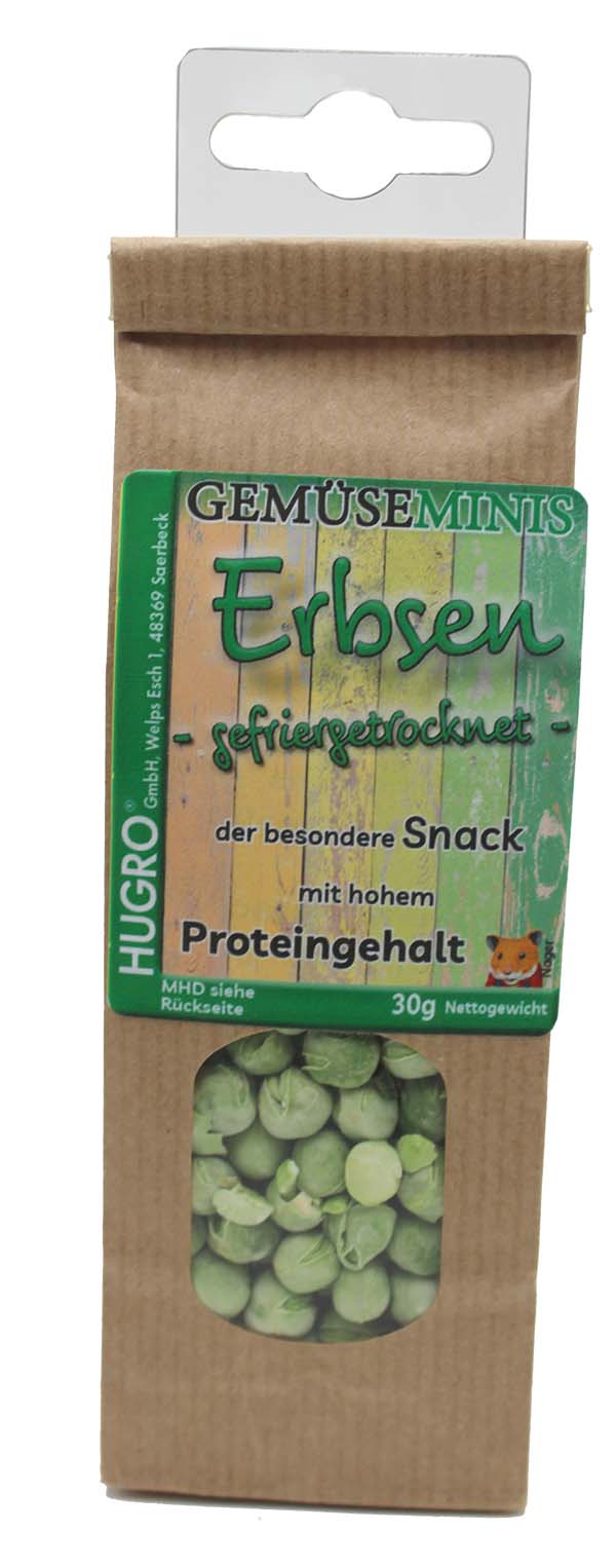 Mit den HUGRO® Minis Gemüsegarten Erbsen können Kleintierbesitzer ihrem geliebten Tier eine ganz besondere Leckerei bieten.
