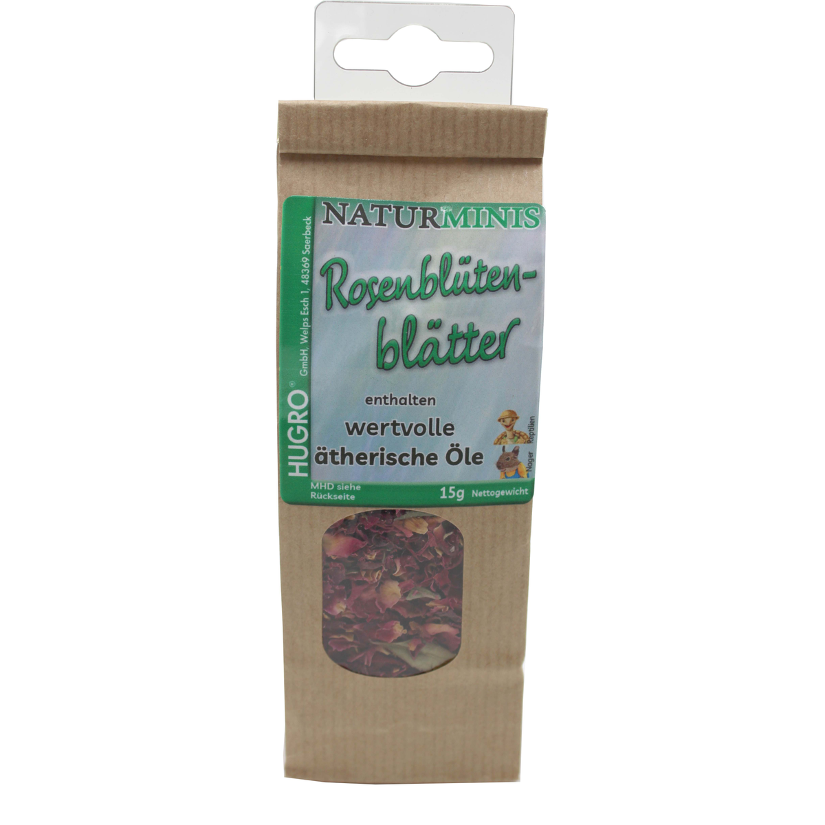 Mit den HUGRO Minis „Rosenblütenblättern“ können Halter von Kleinsäugern und auch Reptilien ein hochwertiges Produkt verfüttern.