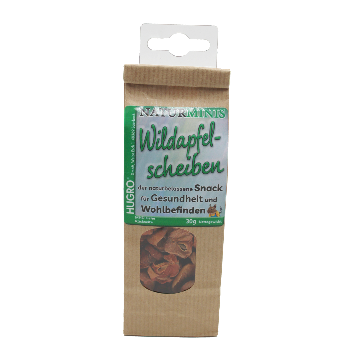 HUGRO Nagertraum Wildapfelscheiben sind ein Einzelfuttermittel für Zwergkaninchen und Nager.