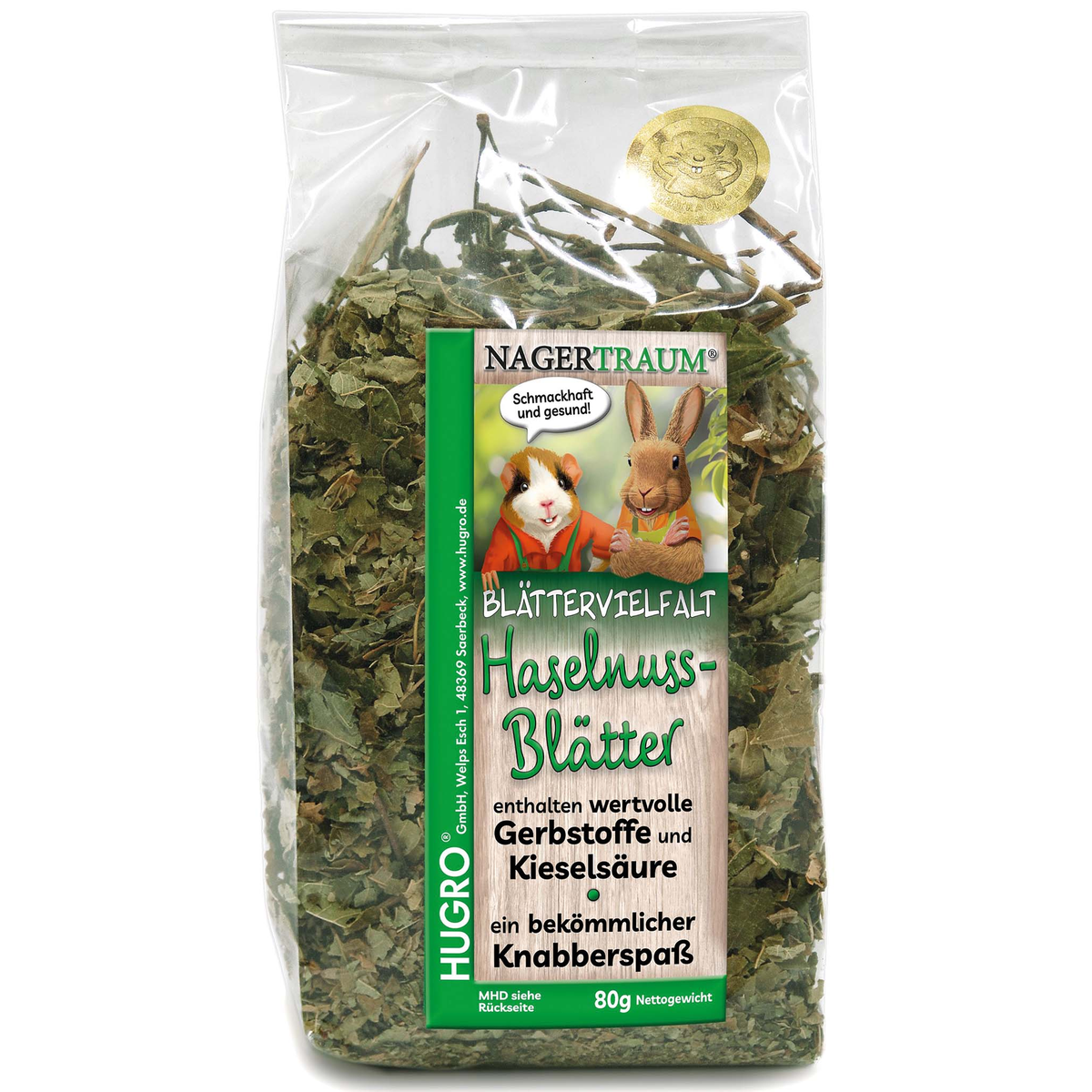 HUGRO Nagertraum Haselnussblätter sind ein Einzelfuttermittel für Zwergkaninchen und Nager.