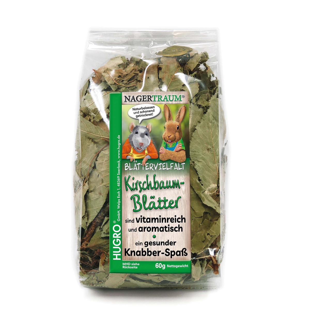 HUGRO Nagertraum Kirschbaumblätter sind ein Einzelfuttermittel für Zwergkaninchen, Meerschweinchen, Chinchillas und andere Nager.